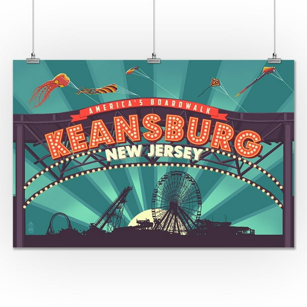 Keansburg New Jersey Boardwalk Marquee Lantern Press Artwork 24x36 Giclee Gallery Print Wall Decor Travel Poster Walmart Com